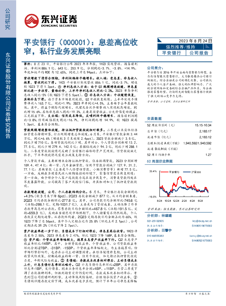 东兴证券:平安银行(000001)-息差高位收窄,私行业务发展亮眼.pdf