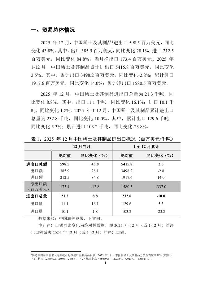 对外经济贸易大学:中国稀土及其制品贸易月度监测报告(2025年1-12月).pdf