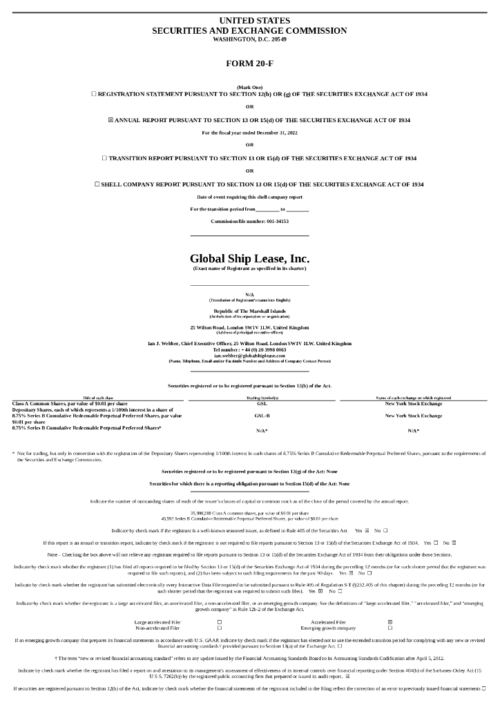 Global Ship Lease, Inc.(GSL)2022财年年度报告(英文版).pdf