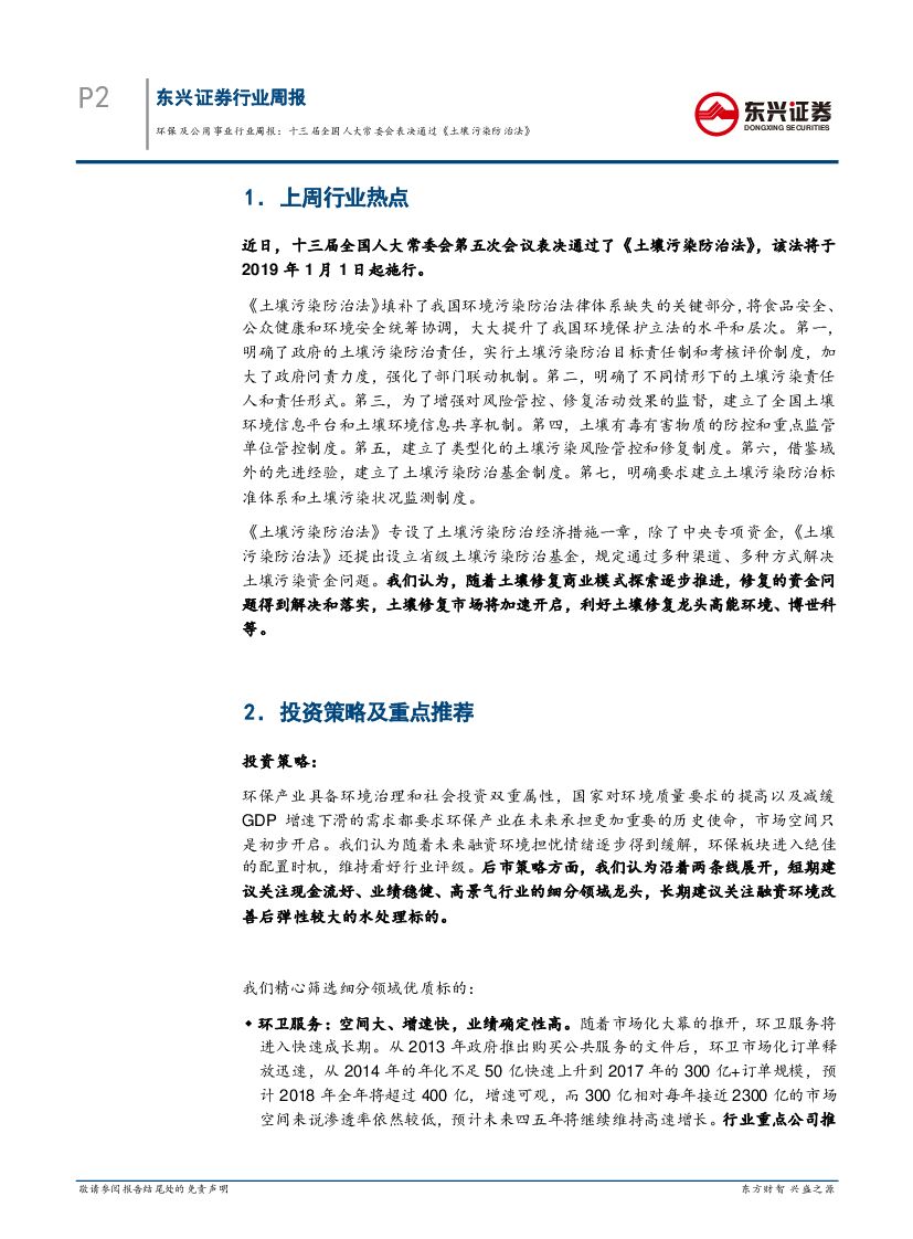东兴证券:环保及公用事业行业周报:十三届全国人大常委会表决通过《土壤污染防治法》.pdf