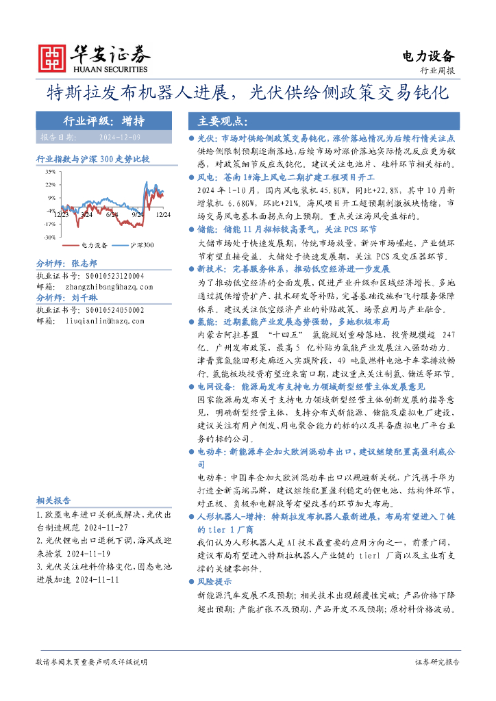 华安证券:电力设备行业周报:特斯拉发布机器人进展,光伏供给侧政策交易钝化.pdf