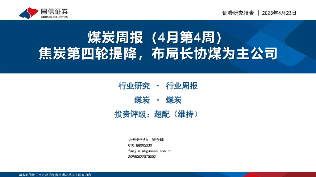 国信证券:煤炭周报(4月第4周):焦炭第四轮提降,布局长协煤为主公司.pdf