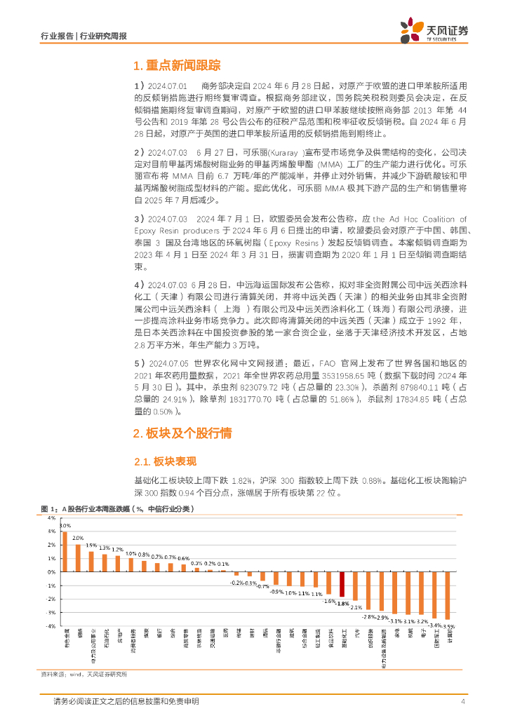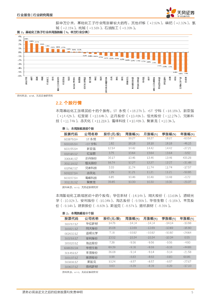 天风证券:基础化工行业研究周报:商务部对原产于欧盟的进口甲苯胺所适用的反倾销措施发起期终复审调查,维生素、硫磺价格上涨.pdf