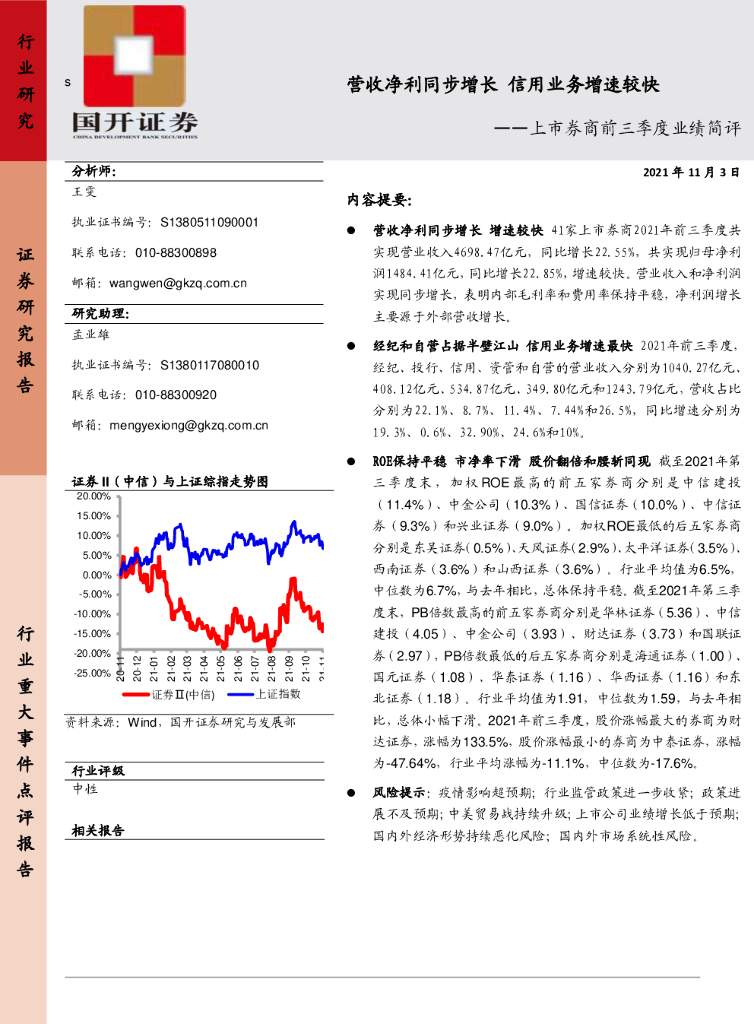国开证券:上市券商前三季度业绩简评:营收净利同步增长 信用业务增速较快.pdf