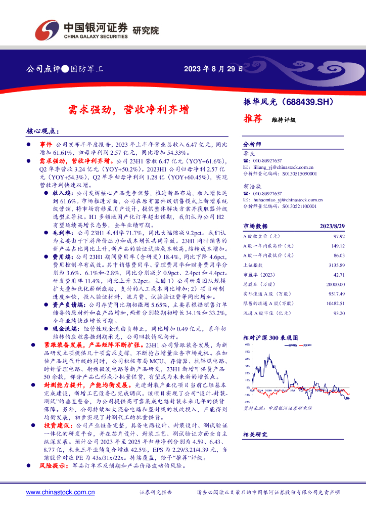 中国银河:振华风光(688439)-需求强劲,营收净利齐增.pdf