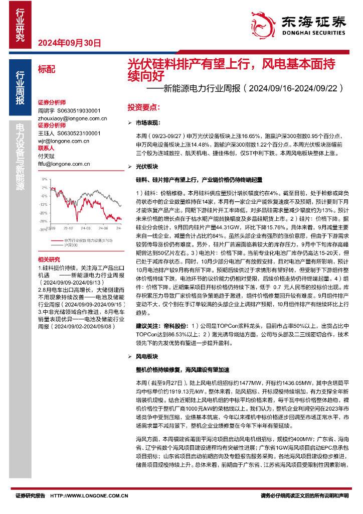 东海证券:新能源电力行业周报:光伏硅料排产有望上行,风电基本面持续向好.pdf