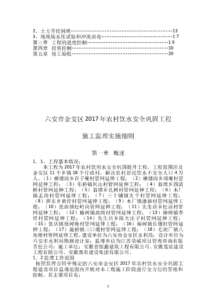 2017年农村饮水安全巩固工程监理实施细则.doc