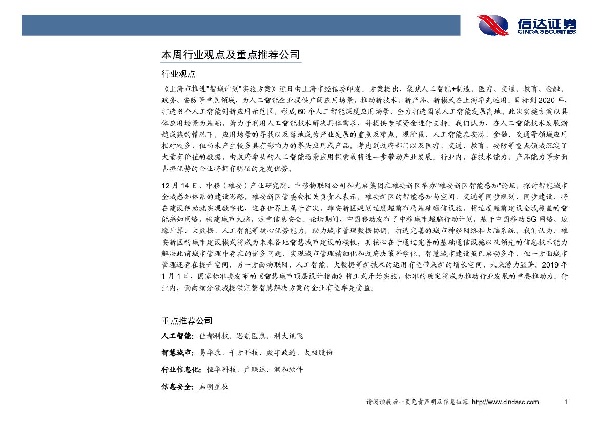 信达证券:计算机行业2018年第50周周报:上海推“智城计划”实施方案,加速人工智能应用落地.pdf