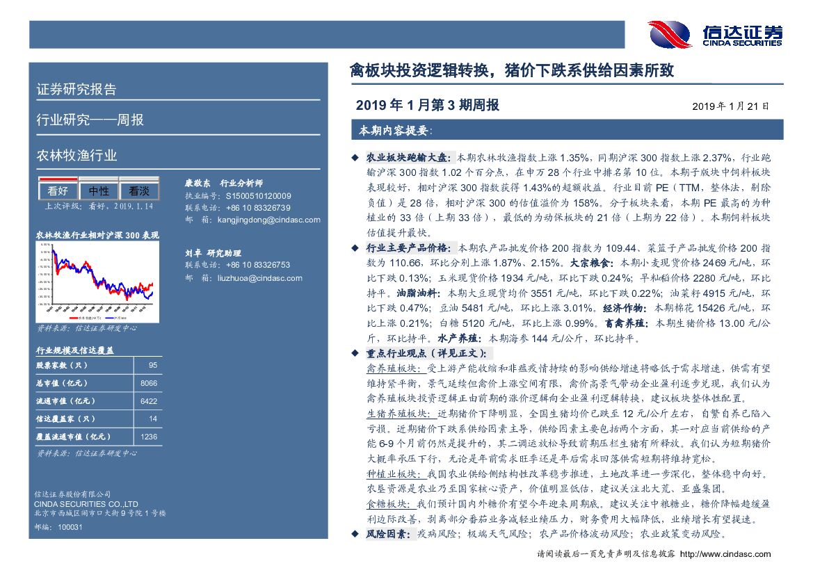 信达证券:农林牧渔2019年1月第3期周报:禽板块投资逻辑转换,猪价下跌系供给因素所致.pdf