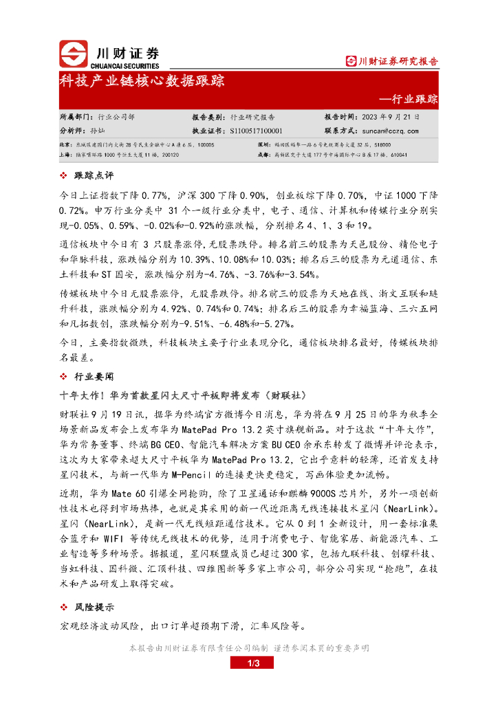 川财证券:行业跟踪:科技产业链核心数据跟踪.pdf