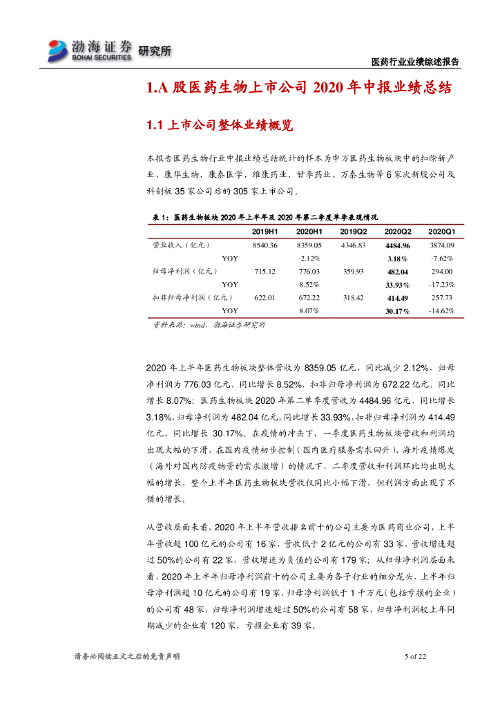 渤海证券:医药行业中报业绩综述:行业二季度回暖,防疫相关个股业绩亮眼.pdf