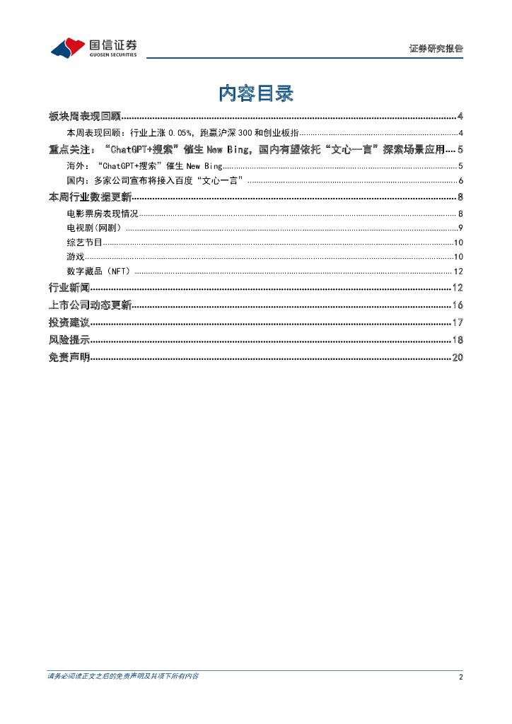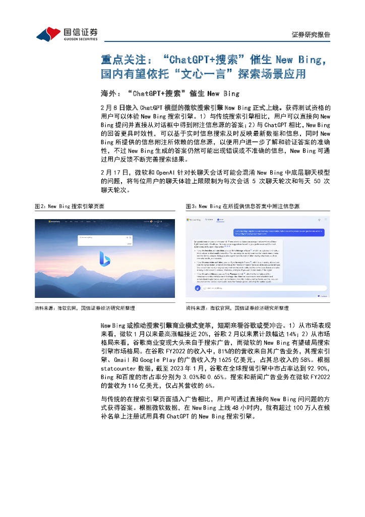 国信证券:传媒互联网周报:“ChatGPT+搜索”催生New Bing,多家公司计划接入“文心一言”.pdf