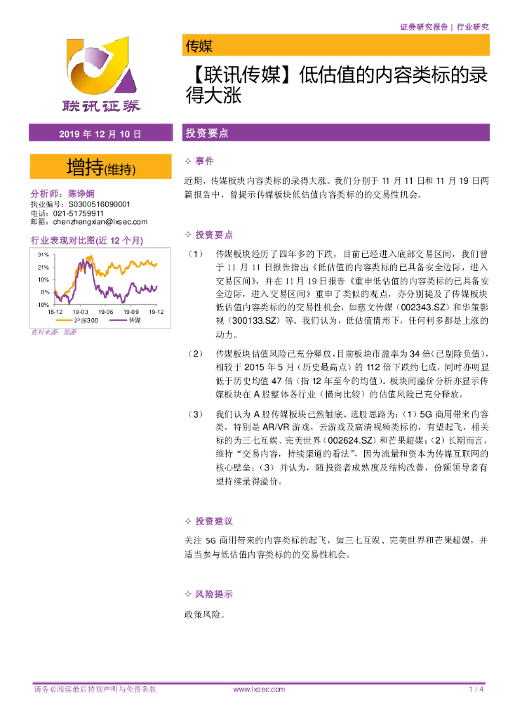联讯证券:【联讯传媒】低估值的内容类标的录得大涨.pdf
