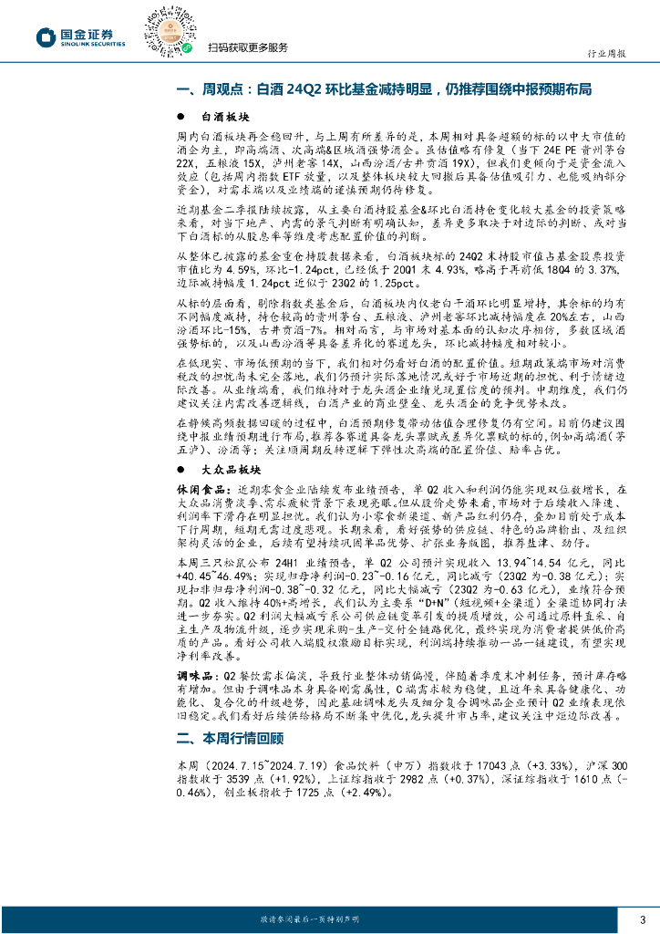 国金证券:食品饮料行业周报:板块基金重仓持股环比下降,推荐围绕中报预期布局.pdf