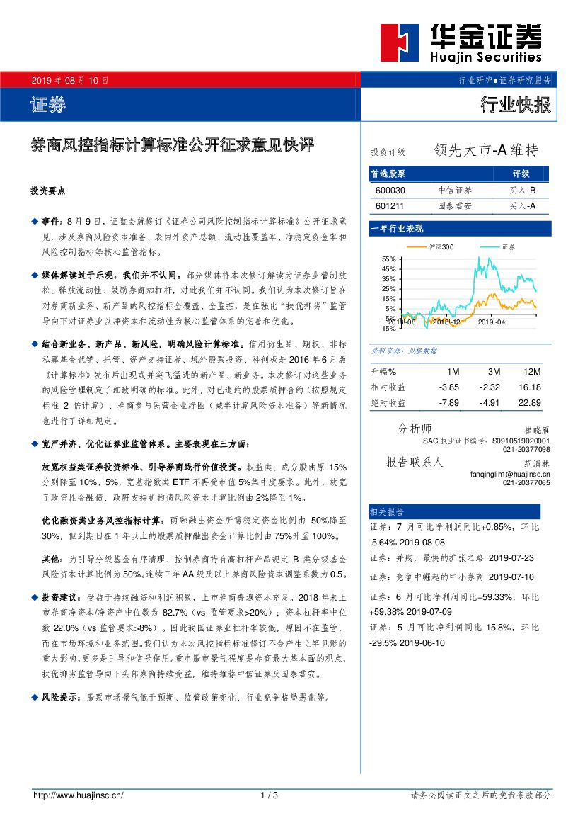 华金证券:证券行业快报:券商风控指标计算标准公开征求意见快评.pdf