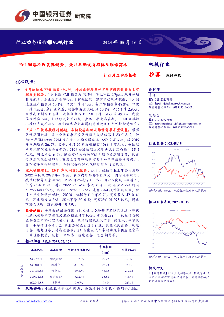 中国银河:机械行业月度动态报告:PMI回落不改复苏趋势,关注车辆设备招标及维修需求.pdf