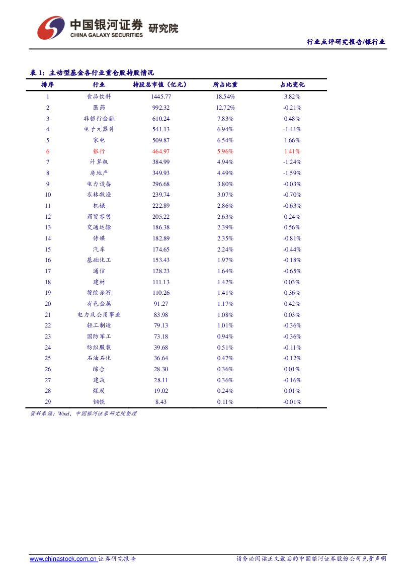 中国银河:银行业点评报告:板块持仓占比上升,机构偏好国有大行和优质零售行.pdf