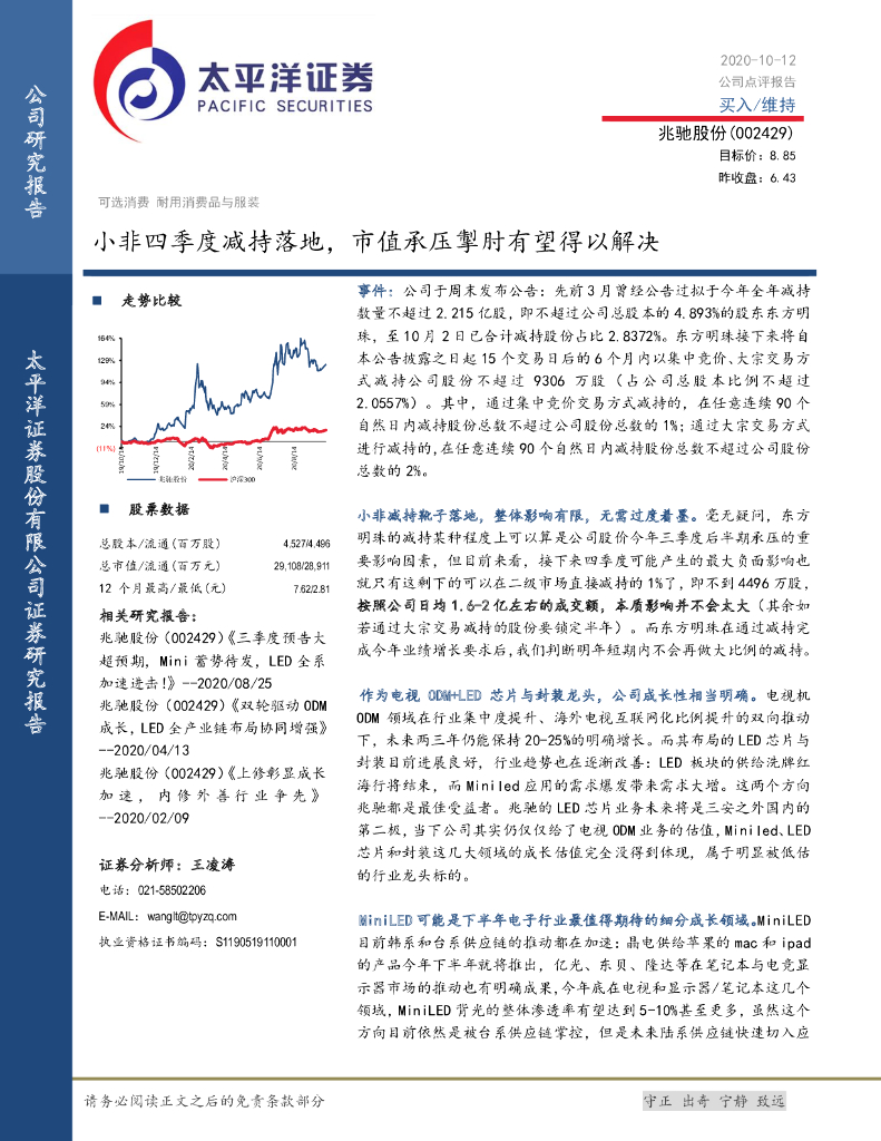 太平洋证券:兆驰股份(002429)-小非四季度减持落地,市值承压掣肘有望得以解决.pdf
