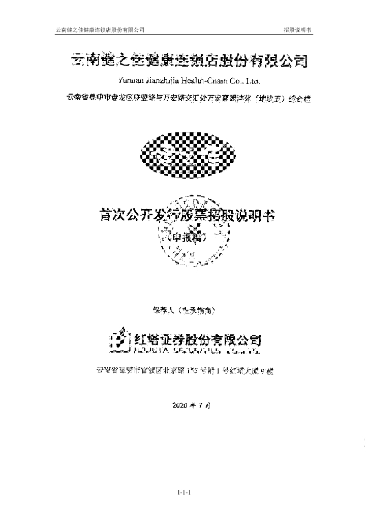 云南健之佳健康连锁店股份有限公司上交所主板IPO上市招股说明书.pdf