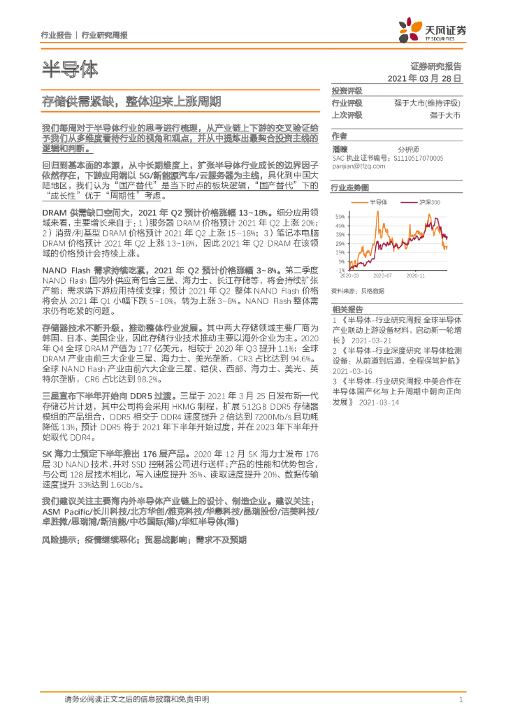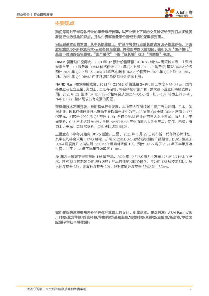 天风证券:半导体行业研究周报:存储供需紧缺,整体迎来上涨周期.pdf