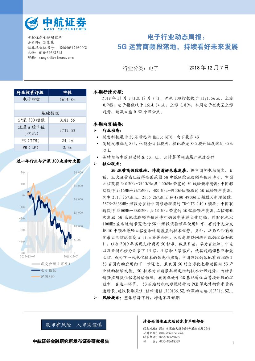 中航证券:电子行业动态周报:5G运营商频段落地,持续看好未来发展.pdf