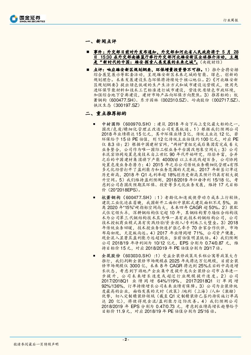 国金证券:建筑和工程行业研究周报:装配式建筑中长期趋势明朗,石油/煤化工景气度提升.pdf