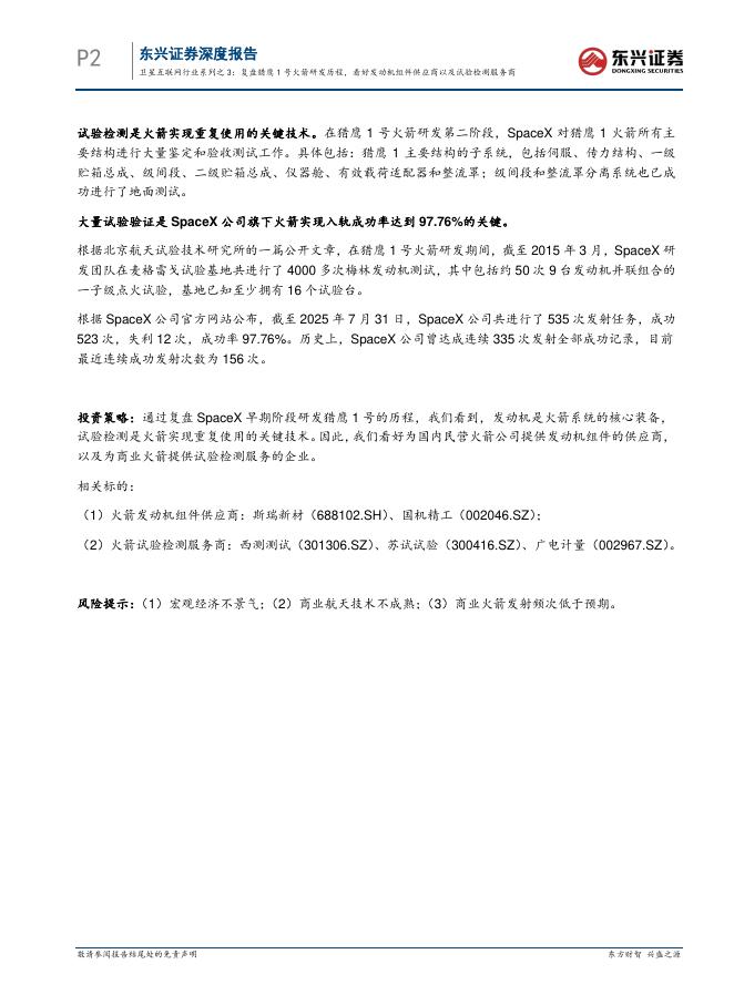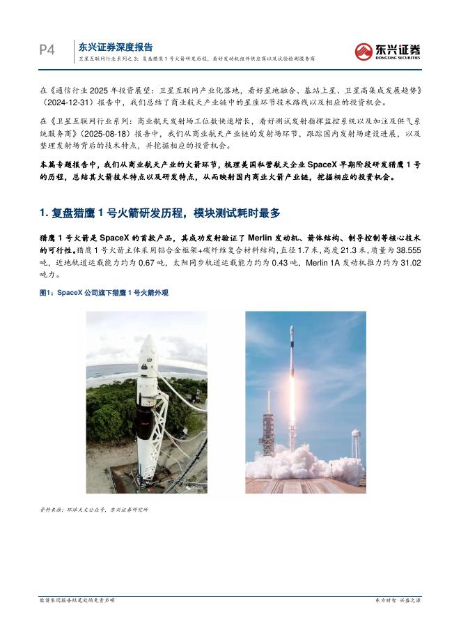 东兴证券:卫星互联网行业系列之3:复盘猎鹰1号火箭研发历程,看好发动机组件供应商以及试验检测服务商.pdf