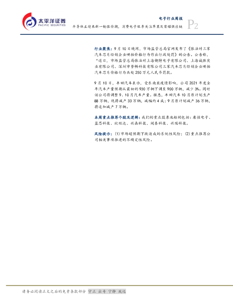 太平洋证券:电子设备、仪器和元件行业周报:半导体正迎来新一轮涨价潮,消费电子旺季关注苹果及荣耀供应链.pdf