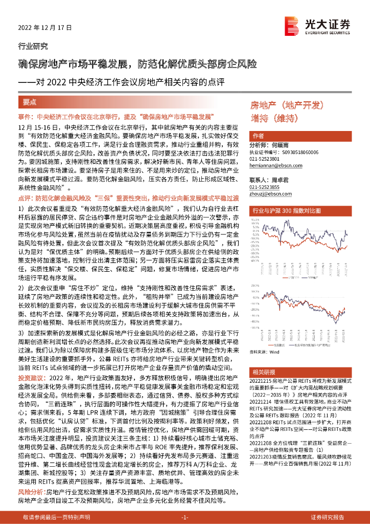 光大证券:对2022中央经济工作会议房地产相关内容的点评:确保房地产市场平稳发展,防范化解优质头部房企风险.pdf