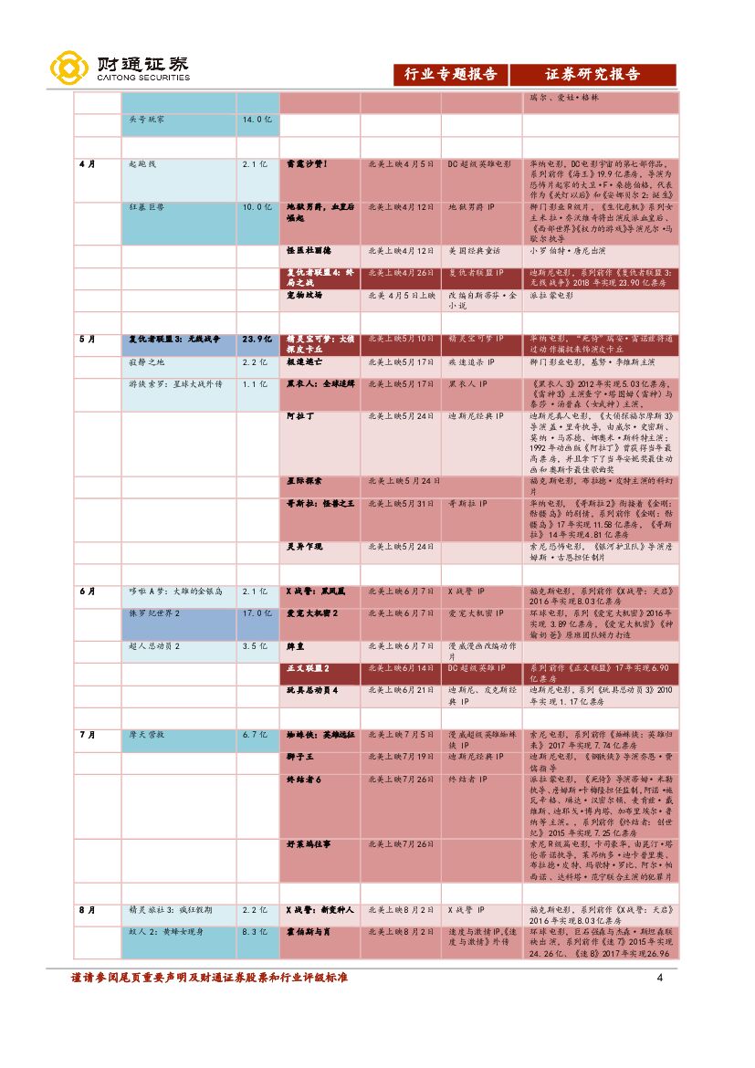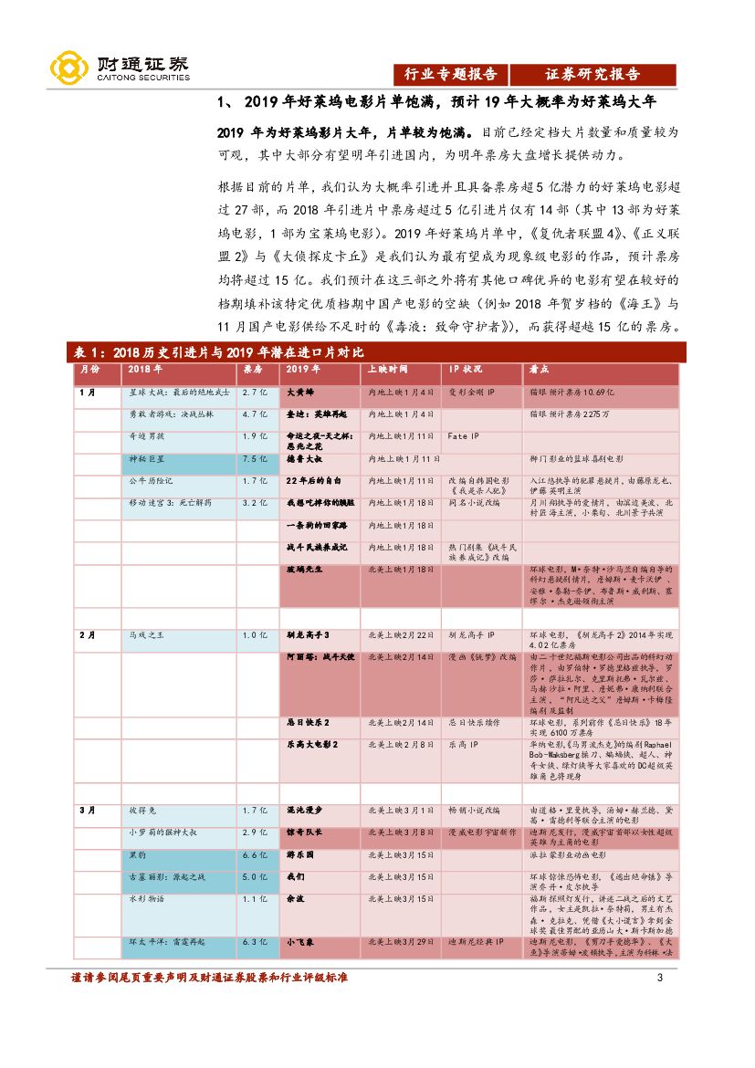财通证券:传媒行业专题报告:2019年引进片内容前瞻:好莱坞六大片单饱满,预计19年大概率为好莱坞大年.pdf