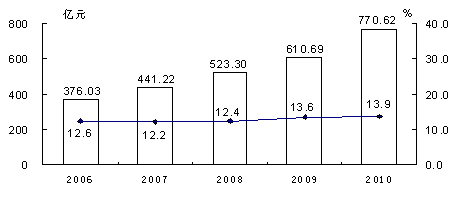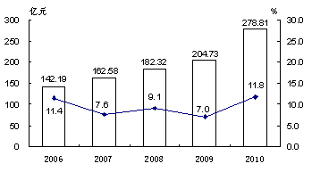 图7 2006—2010年社会消费品零售总额及其增长速度