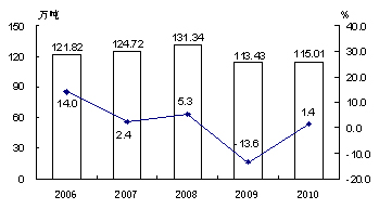 图3 2006—2010年棉花产量及其增长速度
