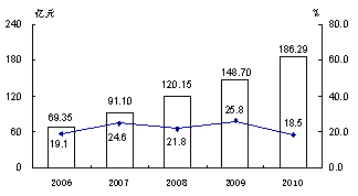图6 2006—2010年固定资产投资及其增长速度