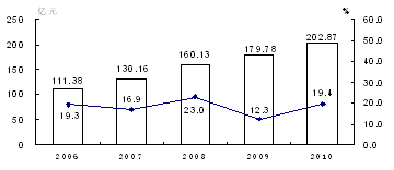 图4 2006—2010年工业增加值及其增长速度