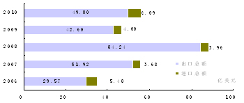 图8 2006—2010年货物进出口总额及其增长速度