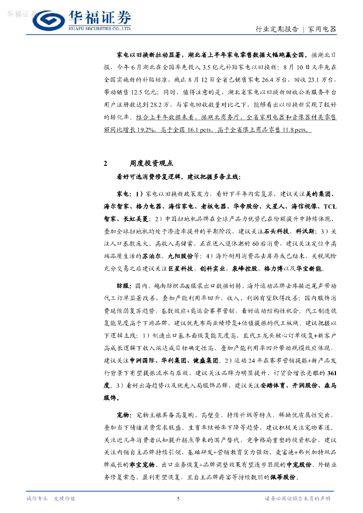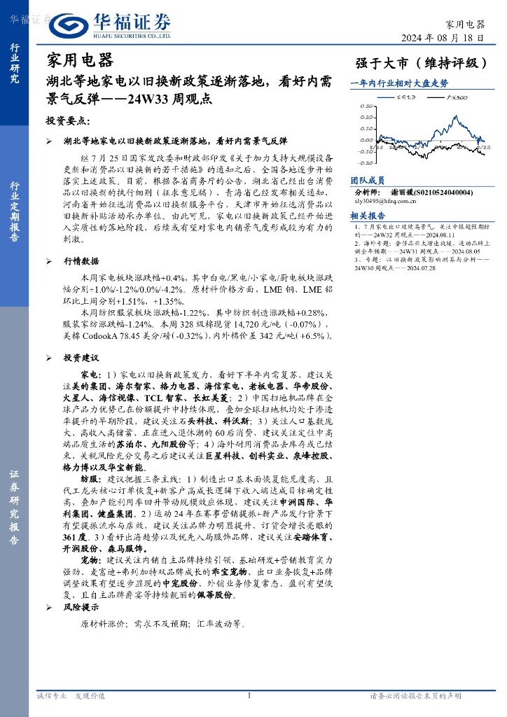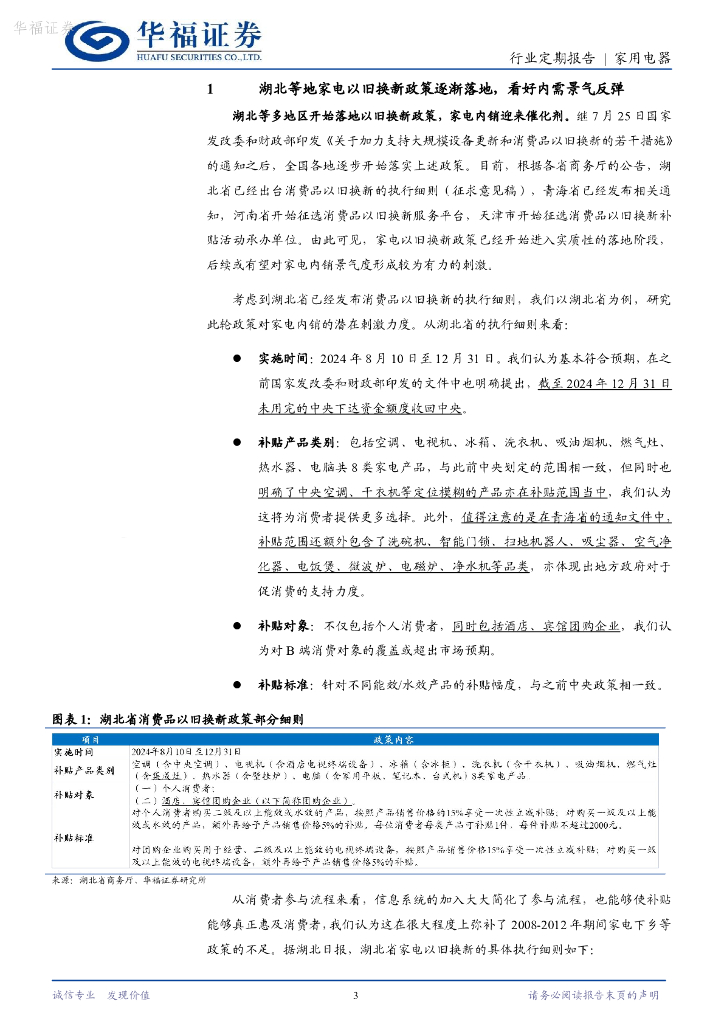 华福证券:家用电器行业24W33周观点:湖北等地家电以旧换新政策逐渐落地,看好内需景气反弹.pdf