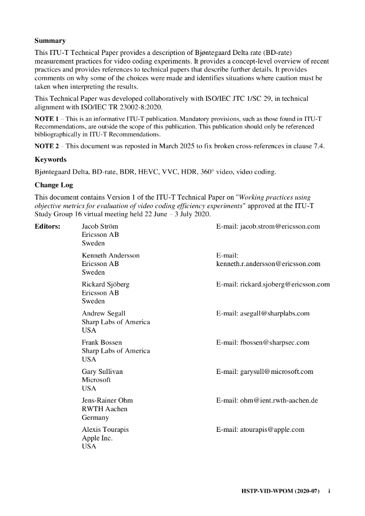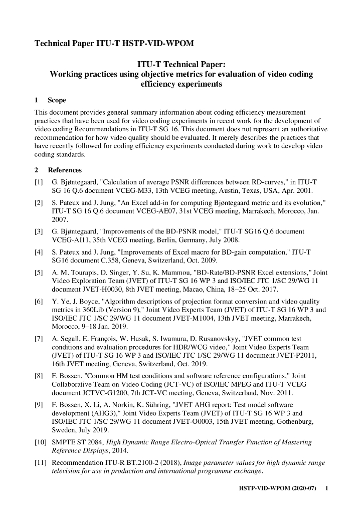 ITU国际电信联盟:2020年使用客观指标评估视频编码效率实验的工作实践报告(英文版).pdf