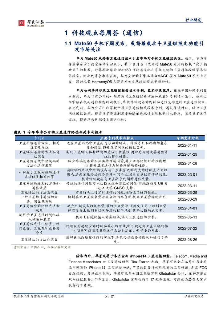 华安证券:通信行业周报:华为mate50新功能引起关注,卫星通信不断验证使用场景.pdf