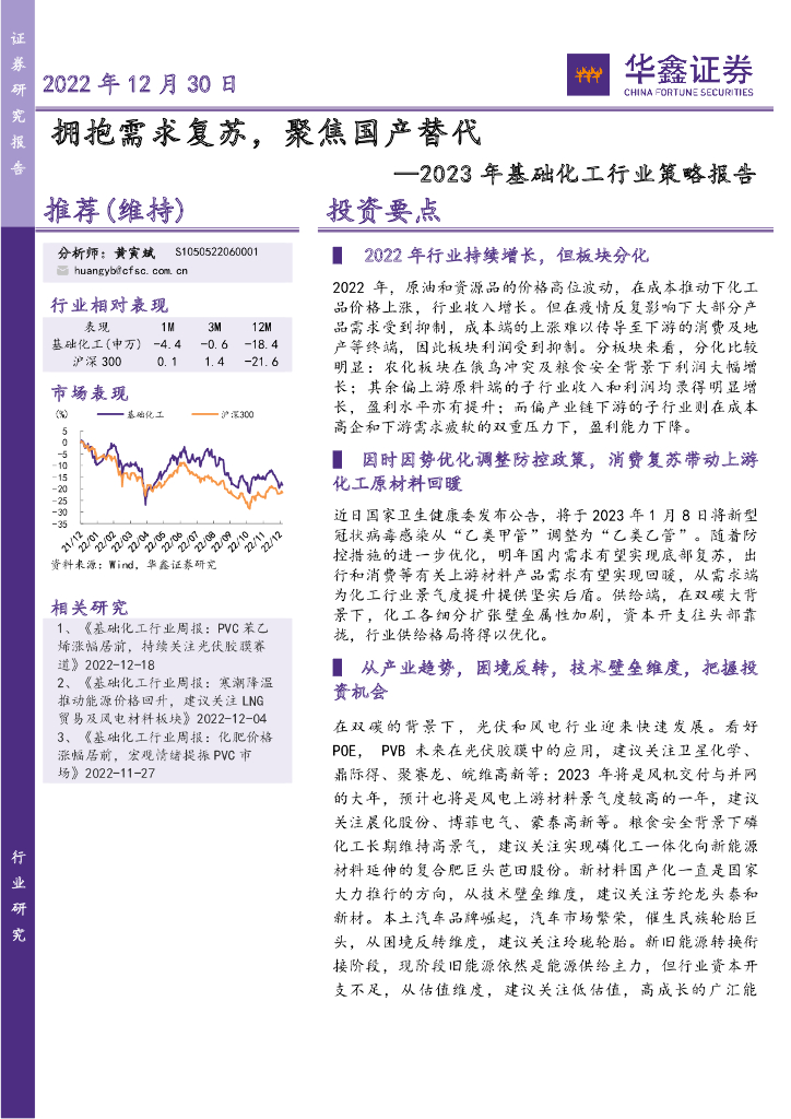 华鑫证券:2023年基础化工行业策略报告:拥抱需求复苏,聚焦国产替代.pdf