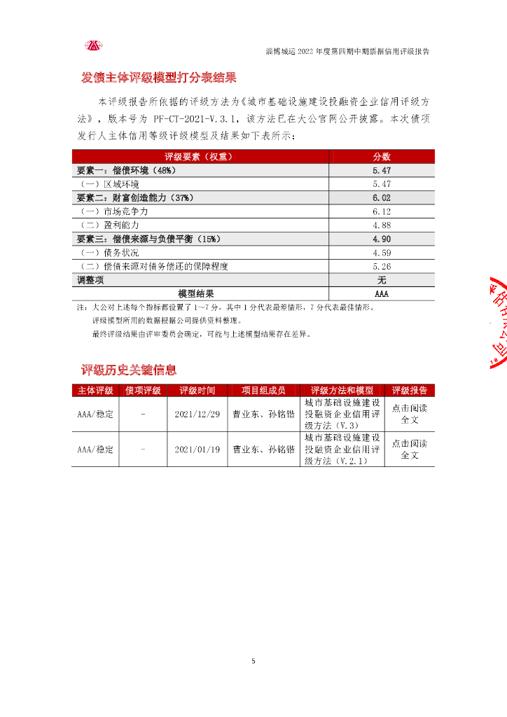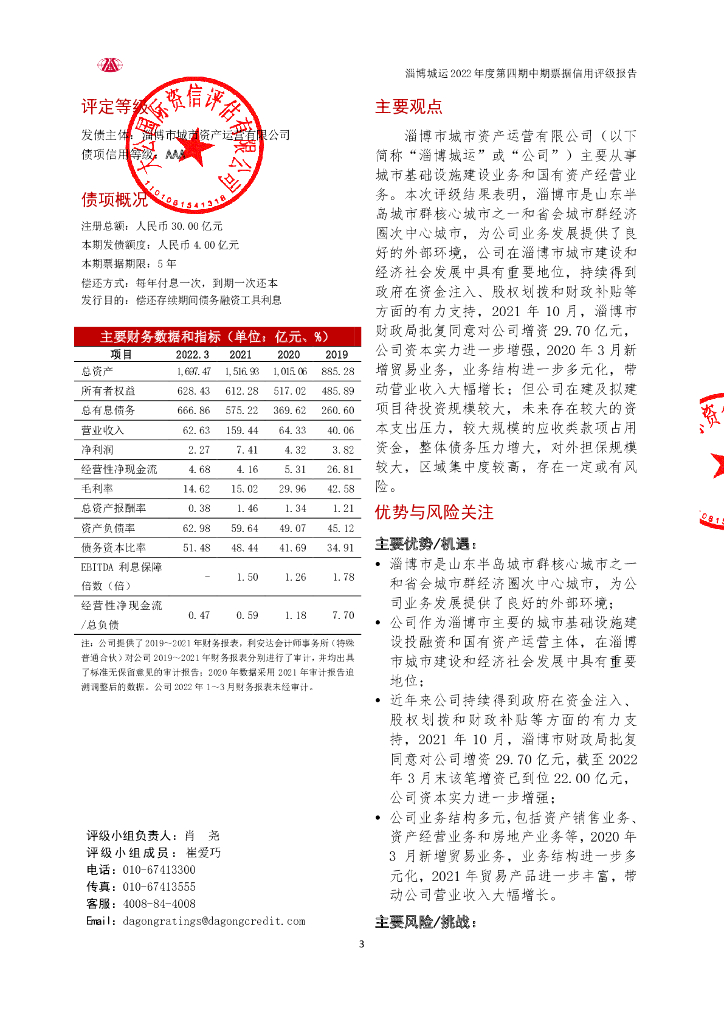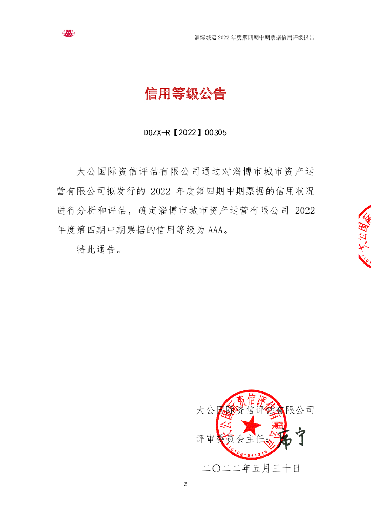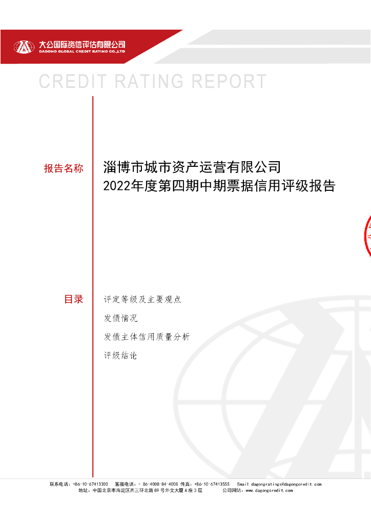 大公:淄博市城市资产运营有限公司2022年第四期中期票据信用评级报告.pdf