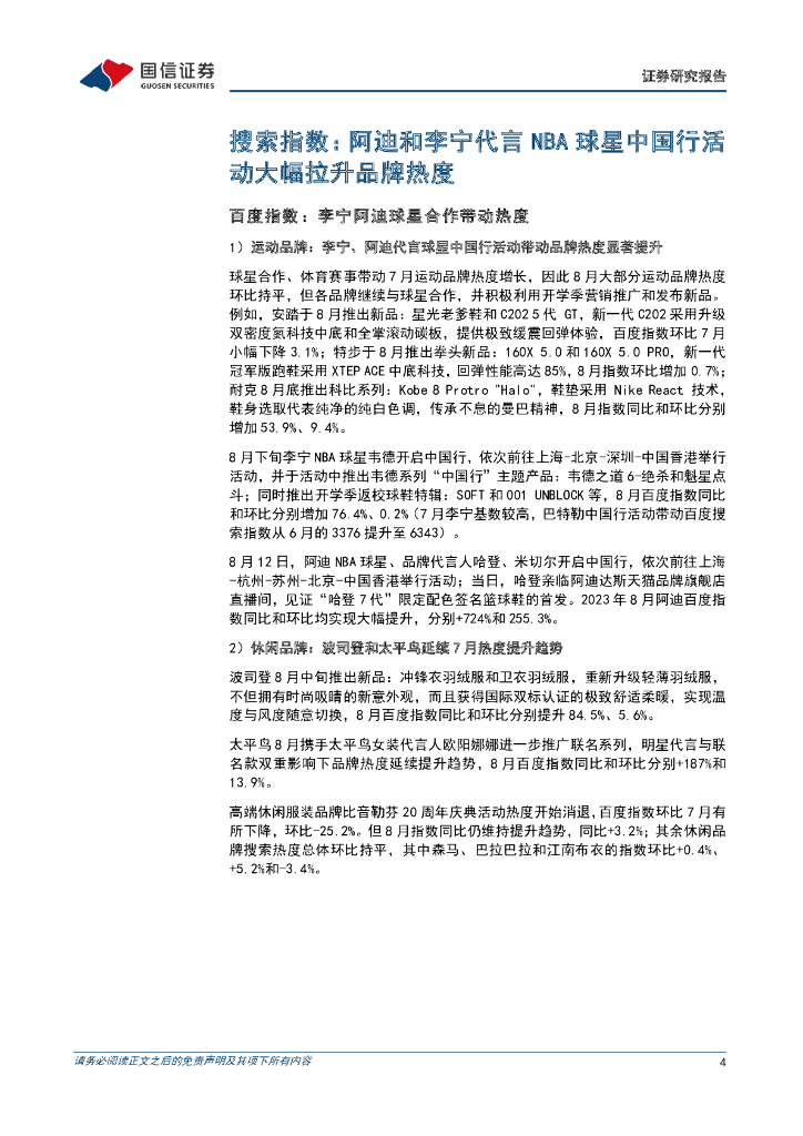国信证券:纺织服装品牌力跟踪月报202308期:8月品牌积极推新,球星中国行拉升品牌热度.pdf