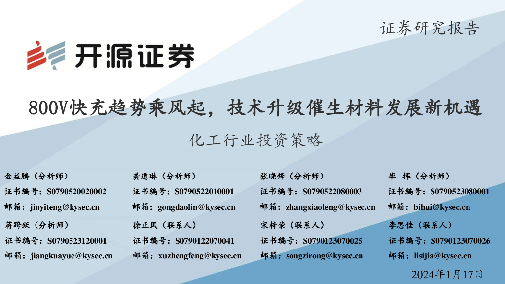 开源证券:化工行业投资策略:800V快充趋势乘风起,技术升级催生材料发展新机遇.pdf