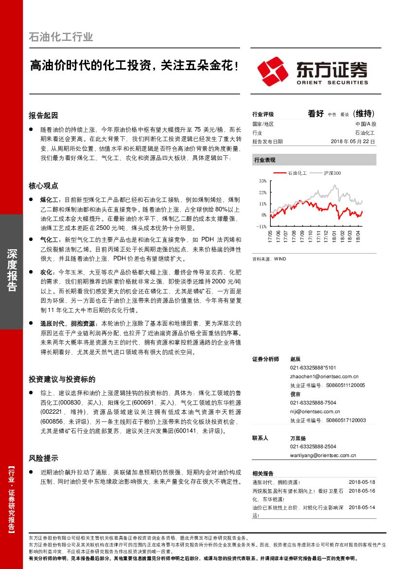 东方证券:石油化工行业深度报告:高油价时代的化工投资,关注五朵金花!.pdf
