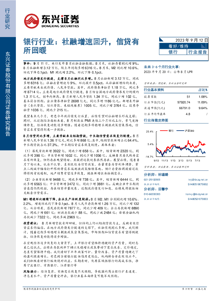 东兴证券:银行行业:社融增速回升,信贷有所回暖.pdf