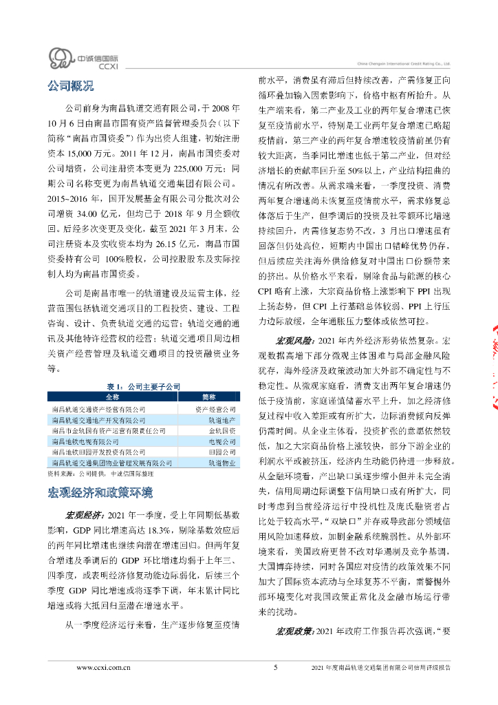 中诚信:南昌轨道交通集团有限公司2021年信用评级报告.pdf