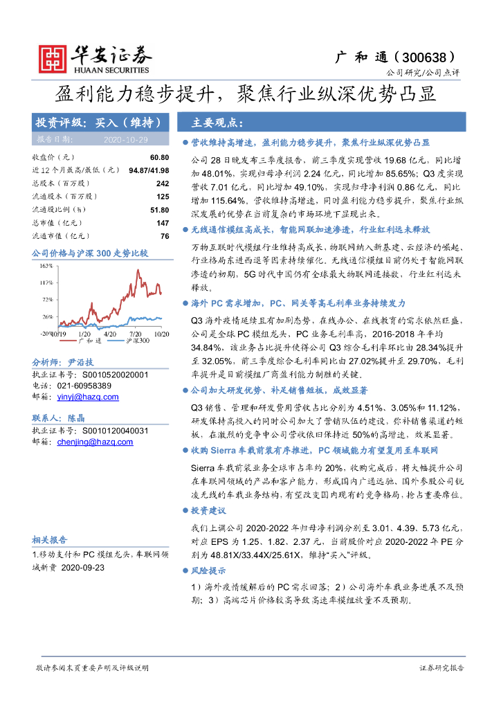 华安证券:广和通(300638)-盈利能力稳步提升,聚焦行业纵深优势凸显.pdf