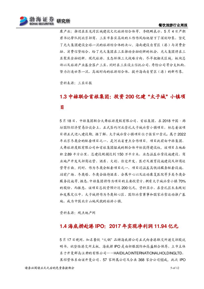 渤海证券:餐饮旅游行业周报:海底捞赴香港IPO,携程一季度高速增长.pdf