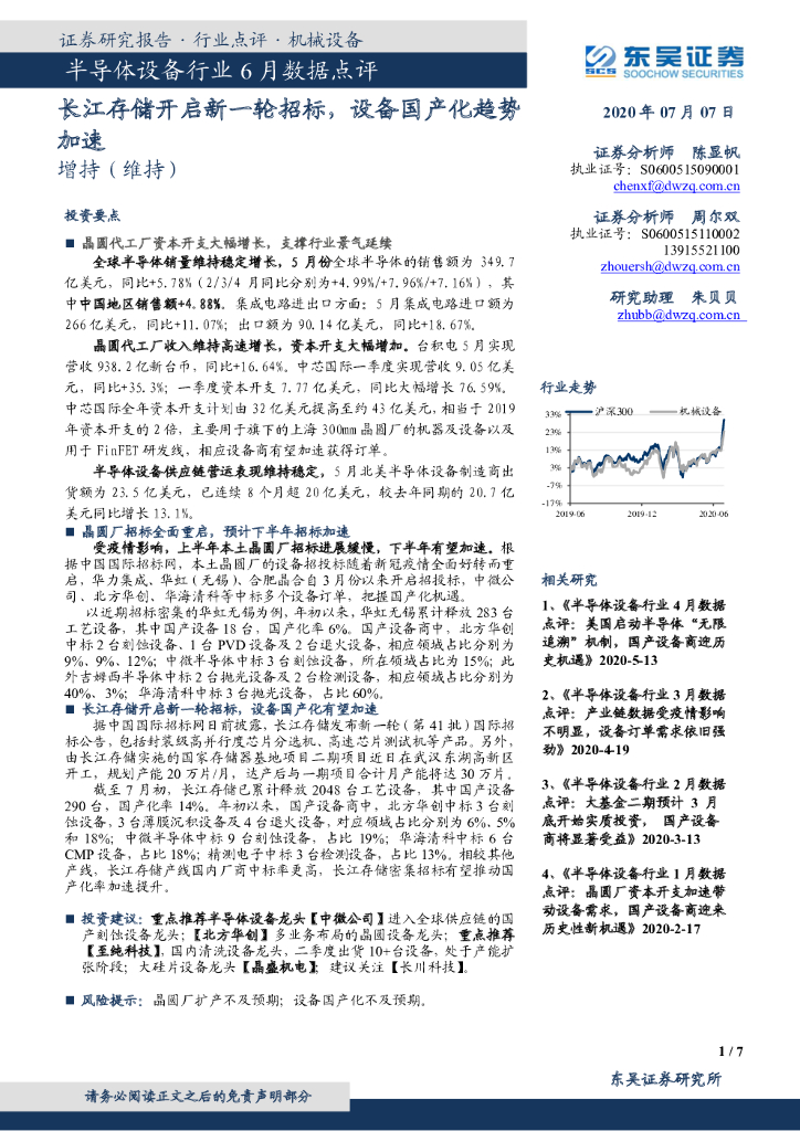 东吴证券:半导体设备行业6月数据点评:长江存储开启新一轮招标,下半年设备国产化趋势加速.pdf