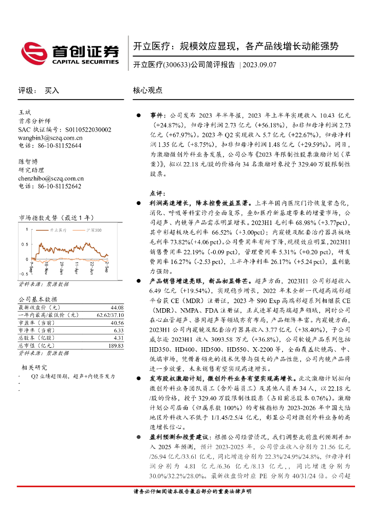 首创证券:公司简评报告:开立医疗:规模效应显现,各产品线增长动能强势.pdf