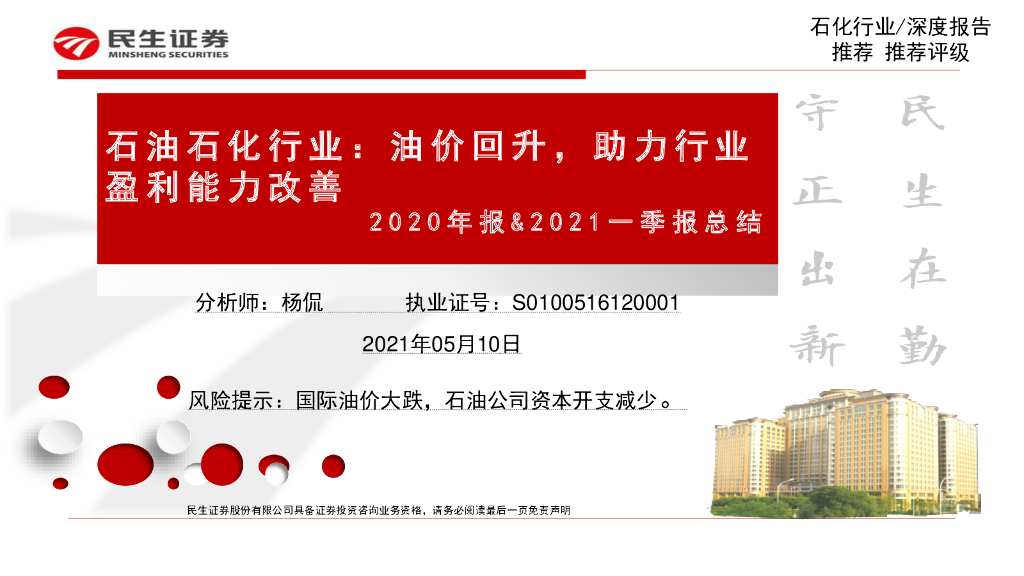民生证券:石油石化行业:2020年报&2021一季报总结:油价回升,助力行业盈利能力改善.pdf